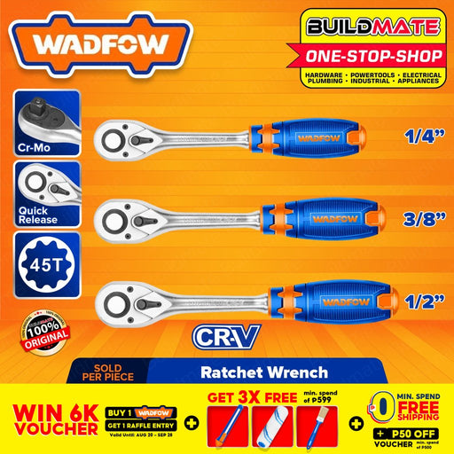 WADFOW 1/4" | 3/8" | 1/2" Inches Ratchet Wrench 45T [SOLD PER PIECE] Hand Tools •BUILDMATE• WHT