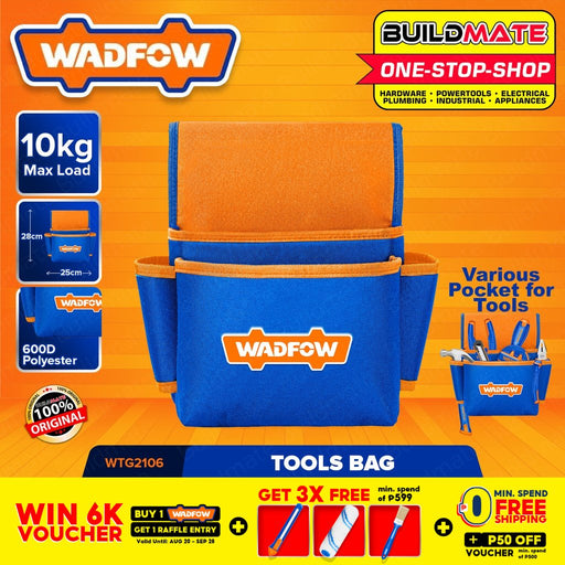 WADFOW Tools Bag Waist Tool Bag Belt DIY Multi Purpose Bag 170x140mm Polyester WTG2101 BUILDMATE WHT
