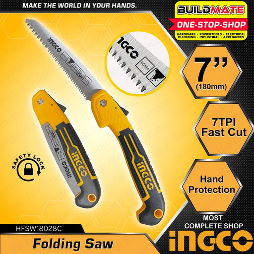 Buildmate Online DepotINGCO Folding Saw Wood Cutter Plant Pruning Pruner HFSW18028C •BUILDMATE• HT2 SPECIFICATIONS: ►Size:7” 180mm ►Material: 65Mn ►Teeth: 7TPI ►Triple ...