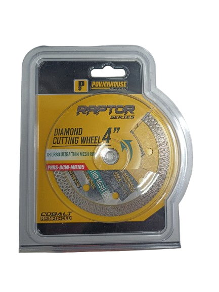 Buildmate Online DepotNo reviewsPowerHouse 4" Inches Raptor Series Diamond Cutting Wheel X-Turbo Ultra Thin Mesh Rim PHRS-DCW-MR105 PTAA SPECIFICATIONS: ► Model: PHRS-DCW-MR105► S...