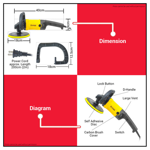 PowerHouse Electric Polisher 1400W 180mm for Car Detailing & Buffing PH-P1800MM PHPT
