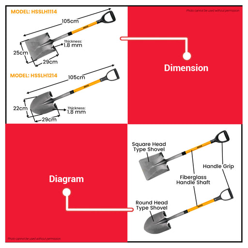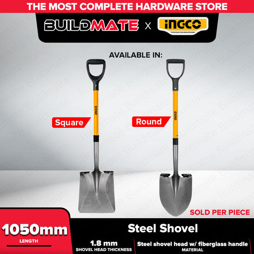 Buildmate Online DepotNo reviewsINGCO 105cm Square/Round Steel Shovel With Fiberglass Handle Garden Spade Digging Tool For Soil Grave & Construction Work SOLD PER PIECE - HT2 ...