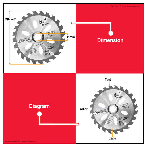 Powerhouse 6-1/2 x 24T Circular Saw Blade for Wood PH-CSWOOD6-12X24T Max Speed 9500RPM PTAA
