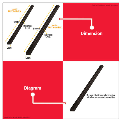 Buildmate Online DepotNo reviewsPowerHouse 1 and 2 Meter Black Electric Track Bar PHETB-1M-BLK | PHETB-2M-BLK PHE SPECIFICATIONS:► MODEL: PHETB-1M-BLK► MODEL: PHETB-2M-BLK ► A dur...