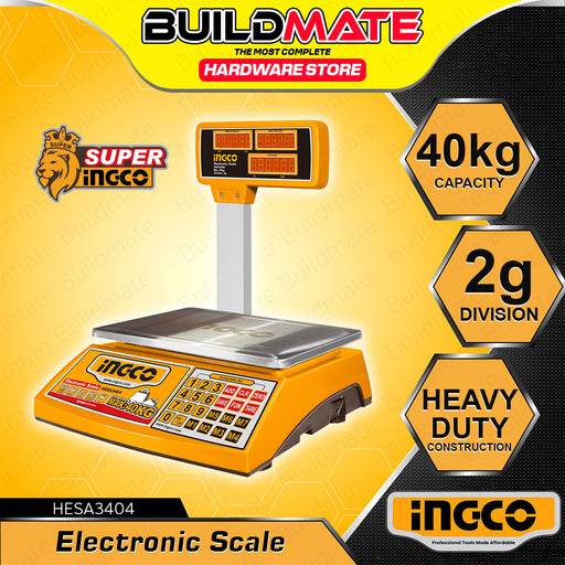 Buildmate Online DepotINGCO Electronic Weighing Scale 40kg HESA3404 100% ORIGINAL / AUTHENTIC •BUILDMATE• SPECIFICATIONS: ►Model: HESA3404 ►40kg ►High Quality ►Heavy Duty