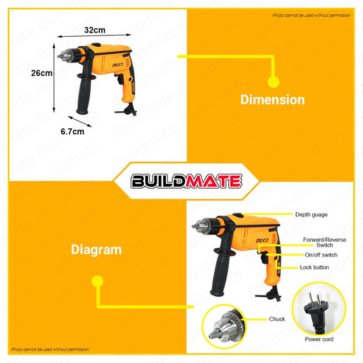 INGCO Impact Drill 750W 13mm ID7508 •BUILDMATE• IPT