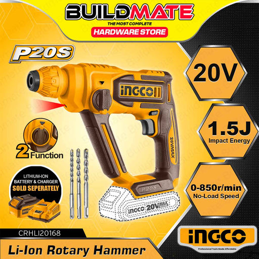 Buildmate Online DepotBUILDMATE Ingco Lithium-Ion Cordless Rotary Hammer 20V Rechargeable Chipping Gun Hammer Drill UNIT ONLY CRHLI1601 / CRHLI20168 - ICPT NOTE: BATTERY...