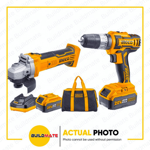 Buildmate Online Depot[COMBO] INGCO Lithium Ion Cordless Angle Grinder and Drill 2PCS Combo Kit CKLI2009 •BUILDMATE• IPT SPECIFICATIONS: ►Voltage: 20V With 1pc ►Lithium ...