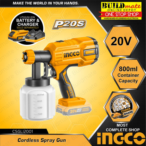 Buildmate Online DepotINGCO Cordless Paint Spray Gun Set Wireless 20V CSGLI2001 •BUILDMATE• ICPTVARIATION:Variant 1:►CSGLI2001 BARE TOOL - Cordless Spray Gun UNIT ONLYVa...