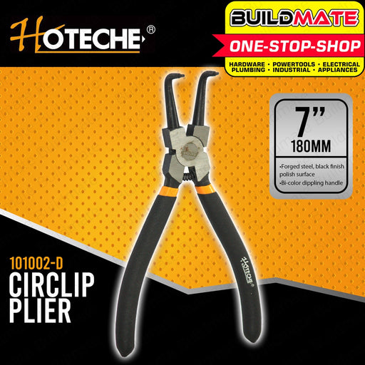 Buildmate Online DepotHOTECHE Circlip Pliers External Bent 7″ 180mm HTC-101002-D •BUILDMATE• SPECIFICATIONS: ►7" ►180mm ►Drop-forged hardened ►Grinding surface ►Bi-colo...