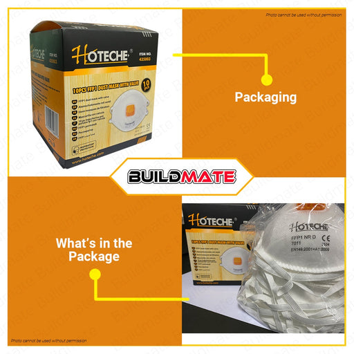 Buildmate Online DepotHOTECHE 10 PCS FFP1 Dust Mask with Valve HTC-435003 •BUILDMATE• SPECIFICATIONS: ►With valve FFP1 ►Metal belt ►Packing: color box