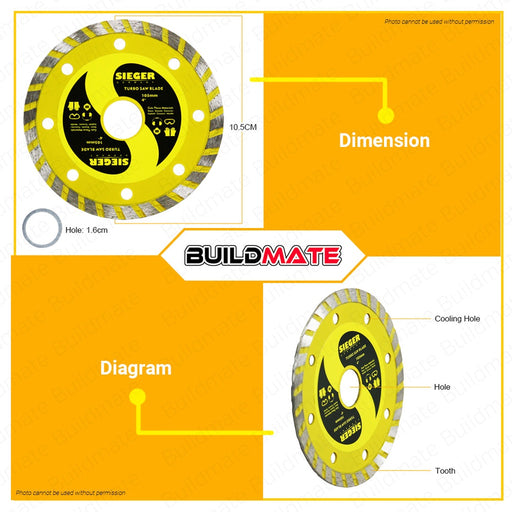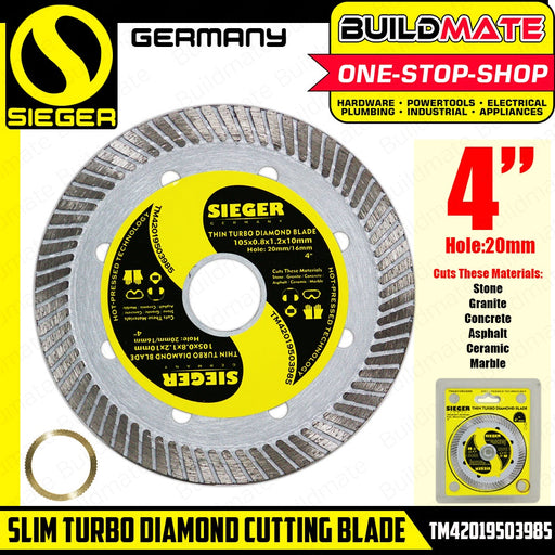 SIEGER GERMANY Turbo Diamond Cutting Blade Wheel Disc 4" 1.2mm x 100mm •BUILDMATE•