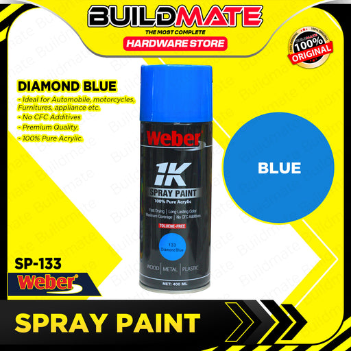 BUILDMATE Weber Auto Spray Paint 400ml SP-133 DIAMOND BLUE Fast Drying Pure Acrylic Color Sprayer Paint Automotive Finishes SOLD PER PIECE