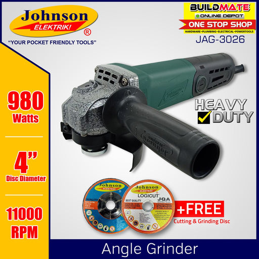 Buildmate Online DepotJOHNSON ELEKTRIK Angle Grinder 980W JAG-3026 +FREE Cutting & Grinding Disc •BUILDMATE• HIGH QUALITY PRODUCT & 100% ORIGINAL! ✔️GUARANTEED ...
