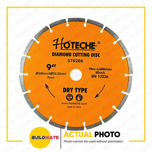Buildmate Online DepotHOTECHE Diamond Cutting Disc 9" Dry Type 570206 •BUILDMATE• SPECIFICATIONS: ►9" ►Dry Type ►Max. 6600min ►80m/s