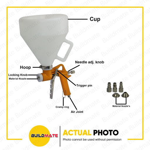 Buildmate Online DepotHOTECHE Air Hopper Spray Gun 4500ml 3.5bar A831421 •BUILDMATE• SPECIFICATIONS: ►Pressure Air: 3.5 Bar ►Plastic Cup Capacity: 4500ml ►Consumption: ...