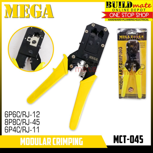 Buildmate Online DepotMEGA Modular Crimping Tool MCT045 •BUILDMATE• SPECIFICATIONS: ►Dual modular ratchet type crimping tool ►Suitable for modular plugs: 8P8C/RJ-45, 6P...