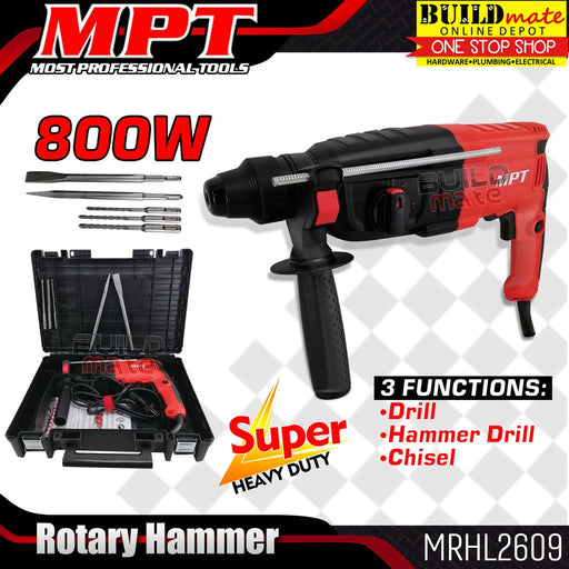 Buildmate Online DepotBUILDMATE MPT 3in1 Rotary Hammer Drill 800W / 850W Chipping Gun Concrete Breaker Drill MRHL2609 / MRH2609 AVAILABLE IN: ►800W - MRHL2609 ►850W - ...