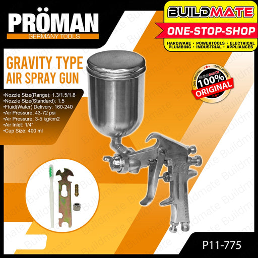 PROMAN Gravity Type Air Spray Gun 400ml Professional Air Paint Sprayer Spray Guns P11-775 •BUILDMATE