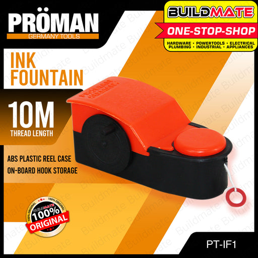Buildmate Online DepotPROMAN Germany Ink Fountain 10m PT-IF1 •BUILDMATE•SPECIFICATIONS:►Model: PT-IF1 ►Thread Length: 10m►ABS Plastic Reel Case►On-Board Hook Storage►Hig...