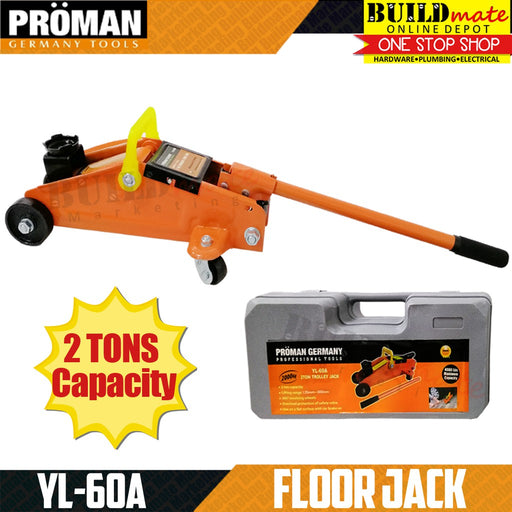 Buildmate Online DepotPROMAN Floor Jack 2 TONS with Case YL-60A •NEW ARRIVAL! • •BUILDMATE• SPECIFICATIONS: ►2 Tons Capacity ►Lifting range 125mm-300mm ►360° Revolving...
