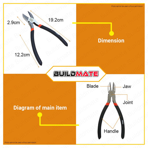 Buildmate Online DepotPROMAN Dip Handle Diagonal Cutter 8" P-DC01 •BUILDMATE• SPECIFICATIONS: ►8" ►Carbon Steel ►High Quality