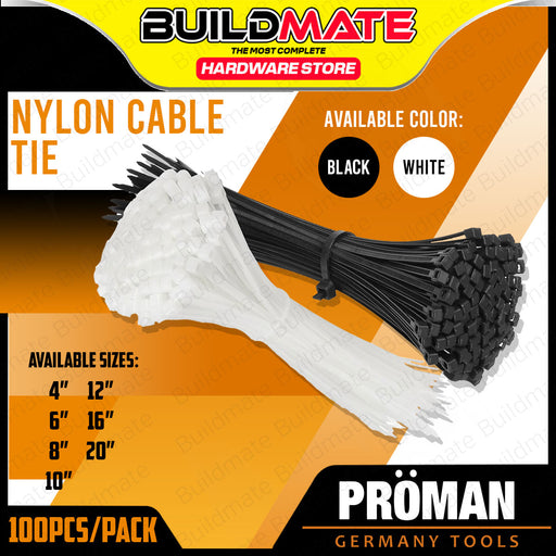 Buildmate Online DepotBUILDMATE Proman 100PCS/PACK Nylon Cable Ties White / Black Self Locking Zip Fastening Wire Wraps Cable Tie SOLD PER PACK AVAILABLE IN:►Black►White...