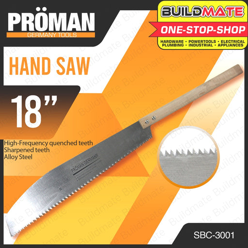 Buildmate Online DepotPROMAN JAPSAW JAP SAW JAPANESE SAW 18" ALLOY STEEL SBC-3001 •BUILDMATE•SPECIFICATIONS:►Size: 18"►High Frequency wrenched teeth►Sharpened Teeth►Allo...