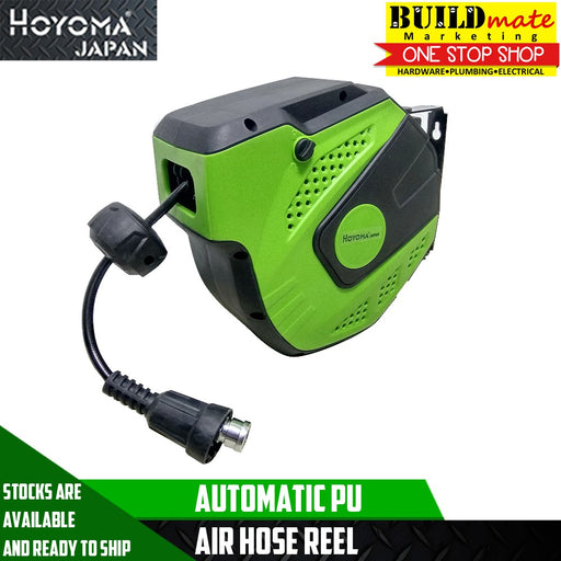 Buildmate Online DepotHoyoma Automatic PU Air Hose Reel AH21 •BUILDMATE• HYMHT SPECIFICATIONS: ►Hose length: 14 +1M ►Hose Material: PU Mesh ►Hose Inner Diameter: 1/4" ►F...