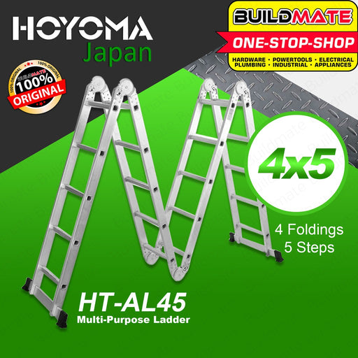 Buildmate Online DepotHOYOMA JAPAN 4 x 5 Multi Purpose Aluminum Folding Ladder HT-AL45 •BUILDMATE•SPECIFICATIONS:►4 x 5 ►Model: HT-AL45 ►Highly compact►Sturdy and stable...