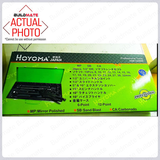 Buildmate Online DepotHoyoma COMBO SET 26PCS/ Socket Set 1/2 Drive 12 Points PLUS Hoyoma Vise Grip HT-VG10 •BUILDMATE• SPECIFICATIONS: ►19PCS: 8, 10 11, 12 , 13, 14 , 15...