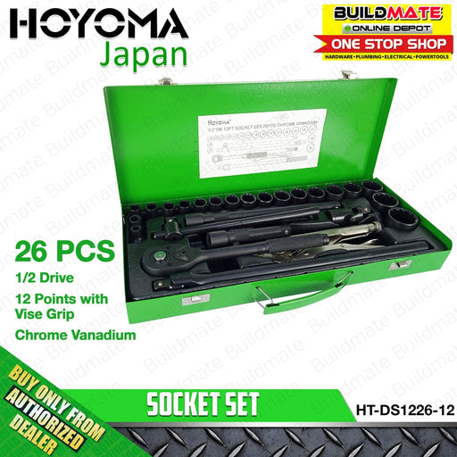 Buildmate Online DepotHOYOMA 26PCS Socket Set 1/2" Inch Drive With Vise Grip 6pt | 12pt Hand Tools •BUILDMATE• HYMHTSPECIFICATIONS:HT-DS1226-6►19pcs 1/2" Drive Impact S...
