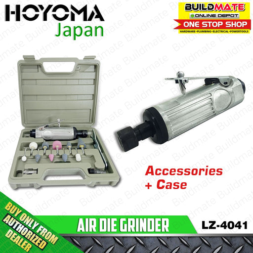 Buildmate Online DepotHOYOMA Air Pneumatic Die Grinder LZ-4041 •BUILDMATE• ►5 pcs 1/4" (6mm) ►5 pcs 1/8" (3mm) ►1 pc nipple ►1 pc air grinder ►2 pcs hand wrenches ►1 p...