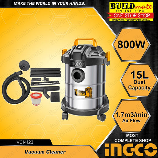 Buildmate Online DepotBUILDMATE Ingco Vacuum Cleaner 800W / 1000W HEPA Filter Heavy Duty Wet & Dry Dirt Floor Cleaner Household Dust Cleaning Power Tools - IPT AVAIL...