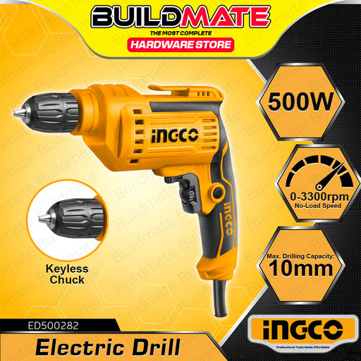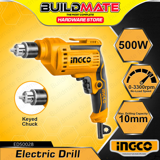 BUILDMATE Ingco 500W Electric Drill Keyed / Keyless Chuck 0-3300rpm Forward/Reverse for Wood & Metal Works with Variable Speed Control Drilling Machine - IPT