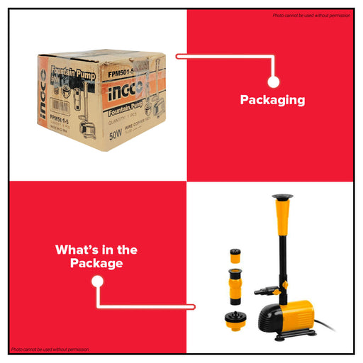 INGCO Fountain Pump 50W FPM501-5 •BUILDMATE• IPT