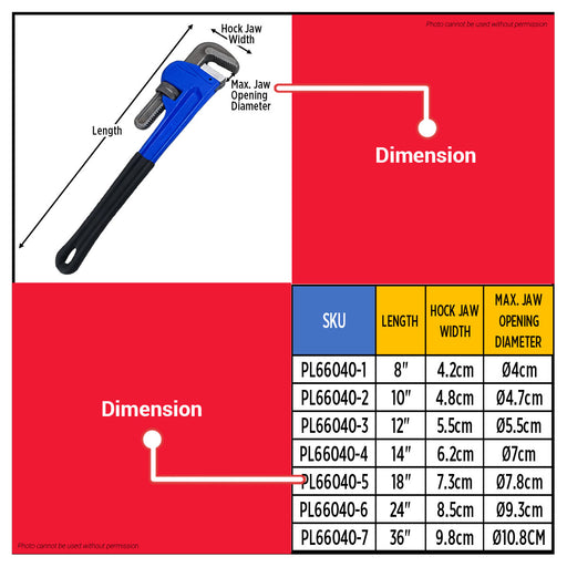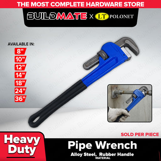 BUILDMATE x POLOLOCK by POLONET Heavy Duty Pipe Wrench 8", 10", 12", 14", 18", 24", 36" | Adjustable Plumbing Wrench Tool