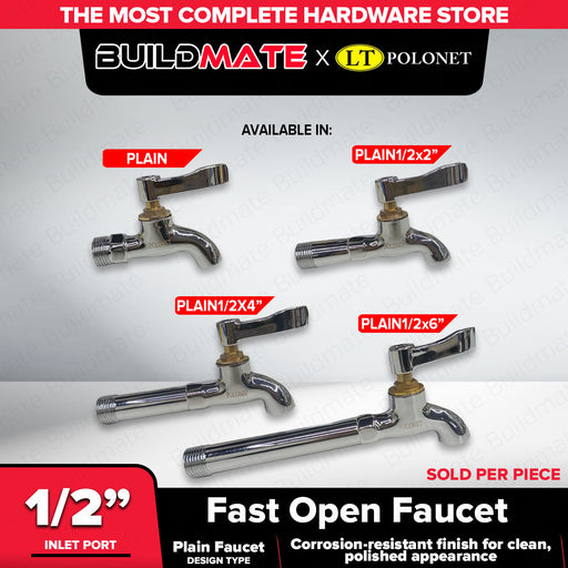 BUILDMATE x POLOLOCK Fast Open Faucet Plain 1/2”x2” / 1/2”x4” / 1/2”x6” – Durable Water Tap for Bathroom, Kitchen & Outdoor Use
