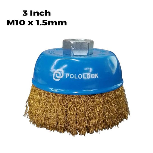 BUILDMATE x POLOLOCK Cup Brush 3” & 4” Plain Type – M10/M14/M16 Thread | Heavy-Duty Steel Wire Brush for Grinder, Rust & Paint Removal