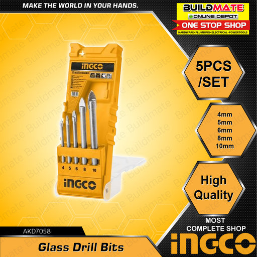 INGCO Glass Drill Bits 5PCS/Set for Glass Tile Cutter & Drilling Hand Tools AKD7058 •BUILDMATE• IHT