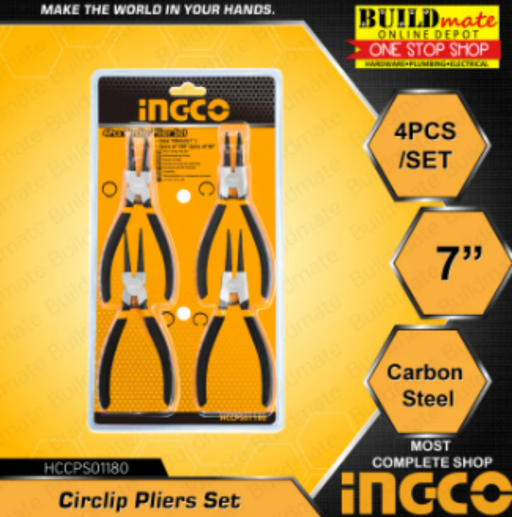 Buildmate Online DepotBUILDMATE Ingco Circlip Pliers 4PCS/SET 180° & 90° 7"/180mm Snap Ring C-Clip Plier HCCPS01180 • IHT SPECIFICATIONS:►4Pcs Circlip Plier Set►2pcs...