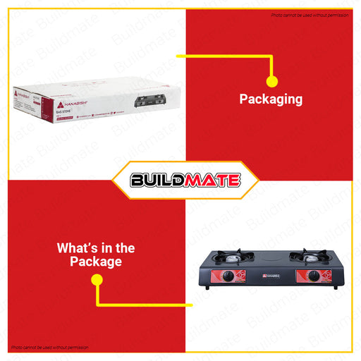 Buildmate Online DepotHANABISHI Gas Stove Double Burner Tempered Glass and Stainless Steel Body GGS-200 •BUILDMATE• SPECIFICATIONS: ►Double burner gas stove ►Double jet ...