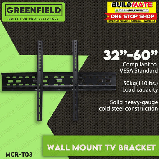 Buildmate Online DepotGREENFIELD 32"-60" Wall Mount TV Bracket Thick Metal Heavy Duty MCR-T03 •BUILDMATE• SPECIFICATIONS: ►32"-60" ►Compliant to VESA Standard ►Load Ca...
