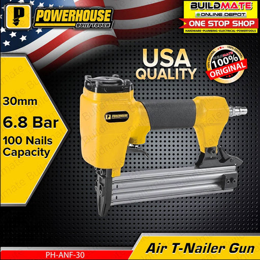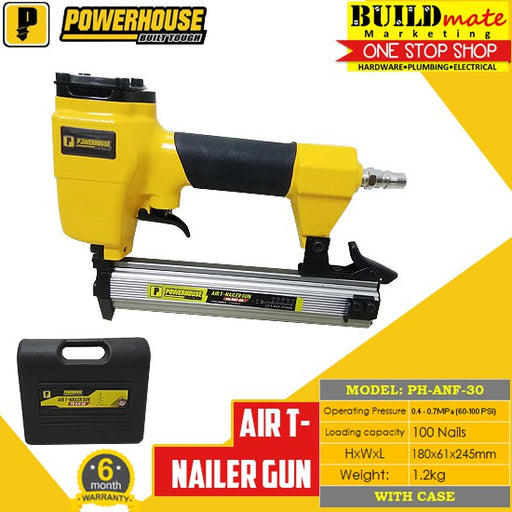 Buildmate Online DepotPOWERHOUSE Pneumatic Air Brad Nailer (Nail Gun) with Case PH-ANF-30 •BUILDMATE• PHP SPECIFICATIONS: ►Operating Pressure: 0.4 - 0.7MPa (60-100 PSI...