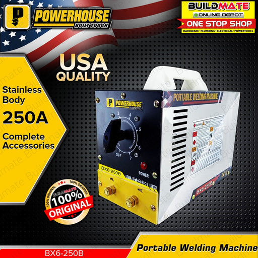 Buildmate Online DepotPowerhouse BX6-250B Portable Welding Machine Stainless Body 250A SPECIFICATIONS ►Related Voltage: 220V ►Rated Frequency (Hz): 60Hz ►Rated Max/Ou...