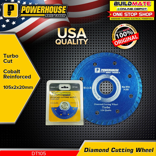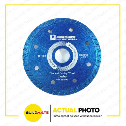 Buildmate Online DepotPOWERHOUSE 4" Inch Diamond Cutting Wheel Disc TURBO Type HIGH SPEED DT105 •BUILDMATE• PTAA SPECIFICATIONS: ►Size: 4" ►Turbo Type ►Max. RPM: 14,500R...
