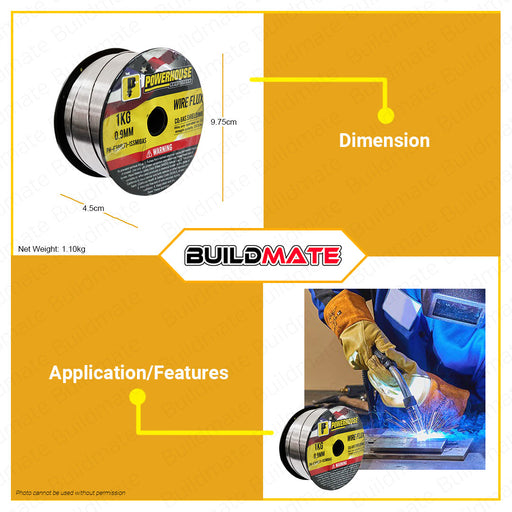 Buildmate Online Depot[5KG] [STEEL] BUILDMATE Powerhouse Flux Cored Wire 0.9mm Fluxcored for Steel Migweld Gasless PHWTA SPECIFICATIONS: ►5.0 kg ►0.9mm FEATURES: ►F...
