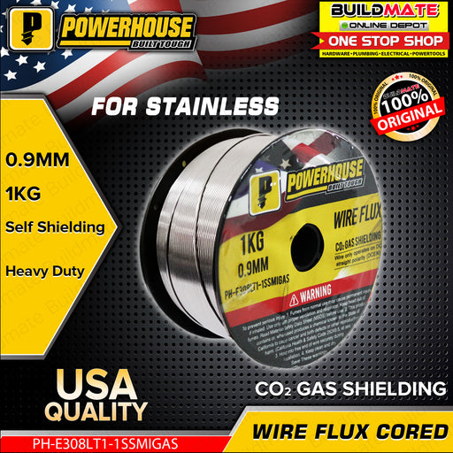 Buildmate Online DepotPOWERHOUSE USA 1KG 0.9MM Gas MIGWELD Flux Cored Wire ER308LT1-1SS 1KG FOR STAINLESS •BUILDMATE• PHWTA Note: NOT COMPATIBLE WITH Powerhouse MIGWELD-...