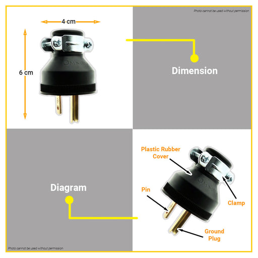 Buildmate Online Depot[WHOLESALE] BUILDMATE Omni 24pcs Parallel Ground Rubber Plug 15A 250V Heavy Duty 3-Prong Male Electrical Power Plug Connector Replacement WPR-003 ...