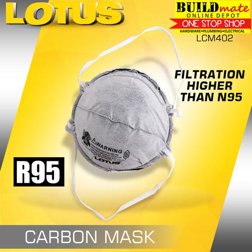 Buildmate Online DepotLOTUS LCM402 Filter Dust Mask R95 (FILTRATION LEVEL IS HIGHER THAN N95) •BUILDMATE• LHT SPECIFICATIONS: ►EVA foam nose seal for added comfort ►A...